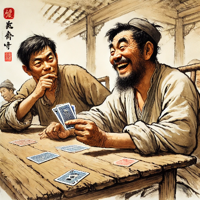 搭档只剩两张牌的时候,对我说:“咱得讲规矩,我剩下的牌不可能一五一十都告诉你…”然后我们就赢了。